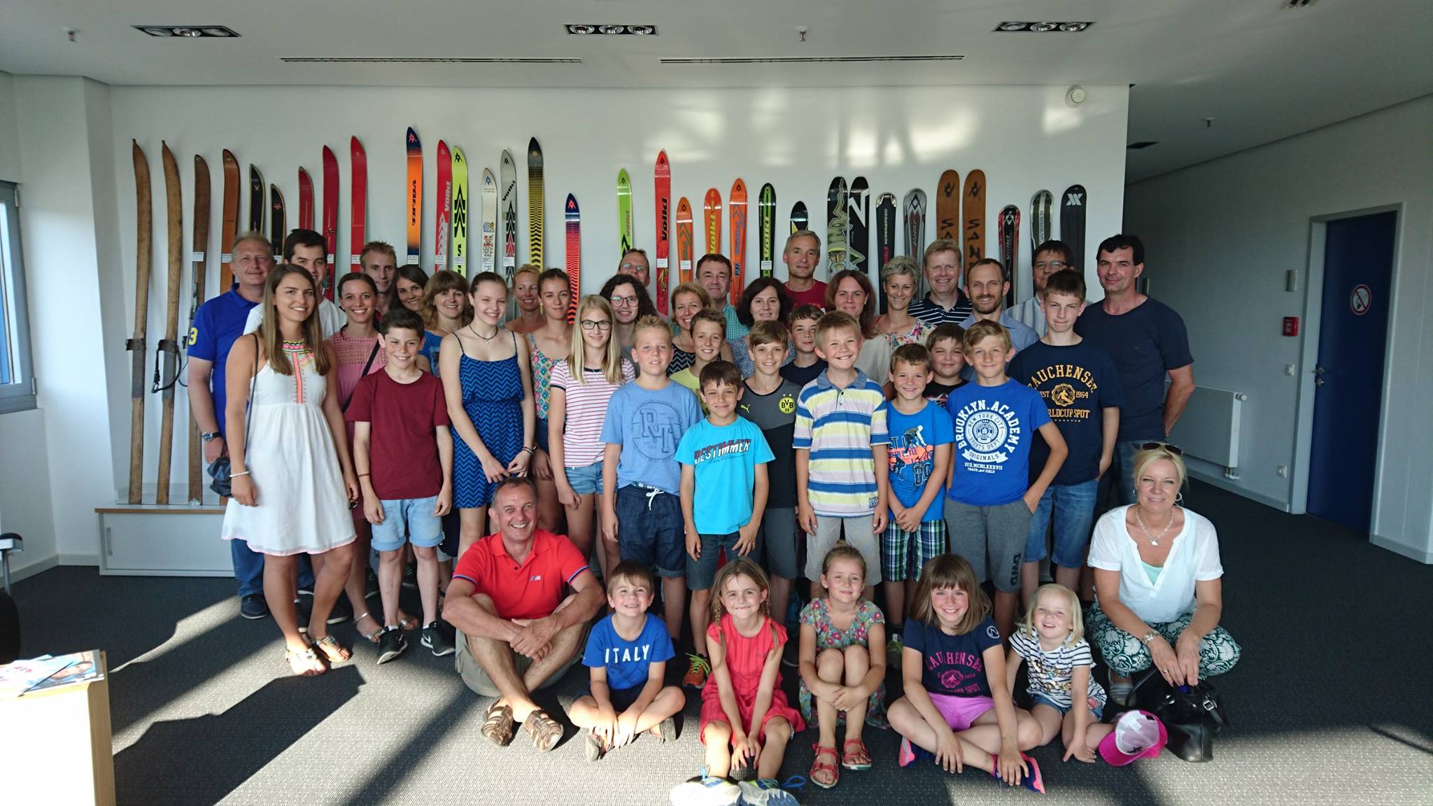 41 Kinder Eltern und Trainer konnten zusehen, wie die Ski der nächsten Saison gefertigt werden. Besonders interessant war die Fertigungstiefe. Beeindrucken war, wie viele Arbeitsschritte notwendig sind um einen Ski zu bauen.