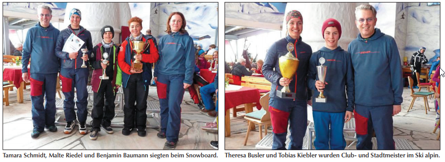 Club- und Stadtmeister 2018 Ski alpin wurden Tobias Kiebler und Theresa Busler. Club- und Stadtmeister